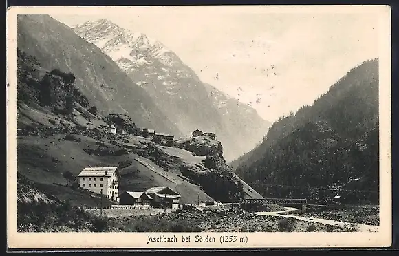 AK Aschbach, Ortsansicht gegen das Gebirge