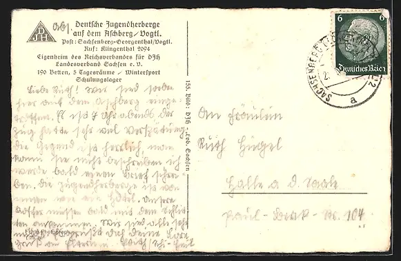 AK Aschberg /Vogtl., Deutsche Jugendherberge im Winter