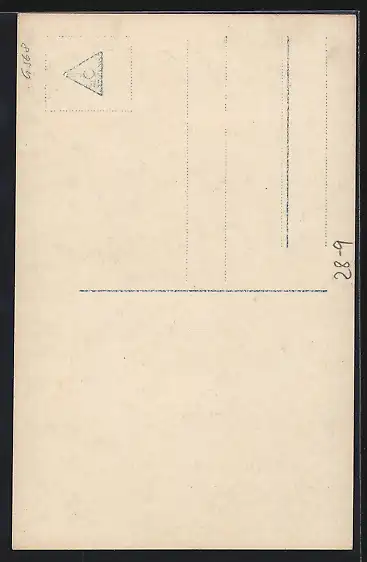 Personenbezogene Daten auf der Rückseite der Karte wurden durch blauen Textmarker unkenntlich gemacht. Die blauen Stellen sind auf die Vorderseite durchgeweicht und wirken sich negativ auf das Postkartenfoto aus