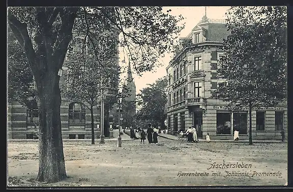 AK Aschersleben, Strasseneck an der Herrenbreite und Johannis-Promenade
