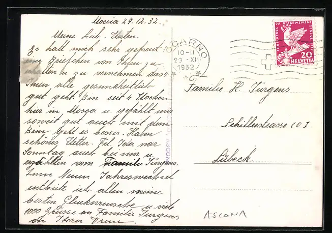 gelaufen 1932, rückseitig Klebe- und Papierreste, guter Zustand