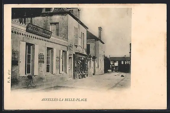 AK Asnelles, Vue de la rue principale avec café et commerces