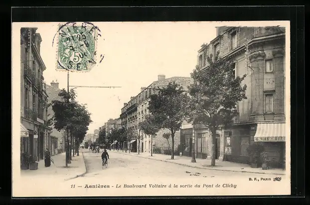 AK Asnières, Le Boulevard Voltaire à la Sortie du Pont de Clichy