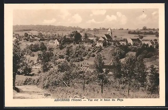 AK Asnieres /Yonne, Vue sur le haut du Pays
