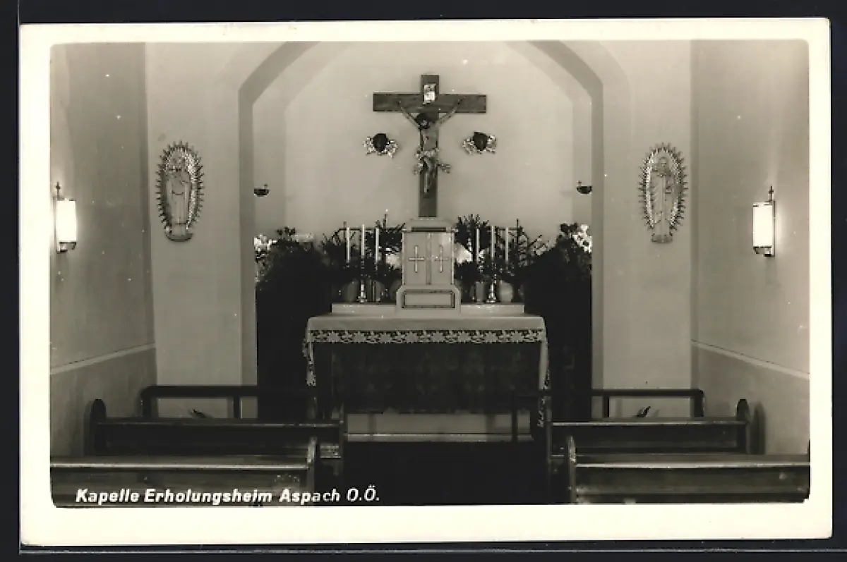 AK Aspach /O. Ö., Kapelle Erholungsheim, Blick auf den Altar