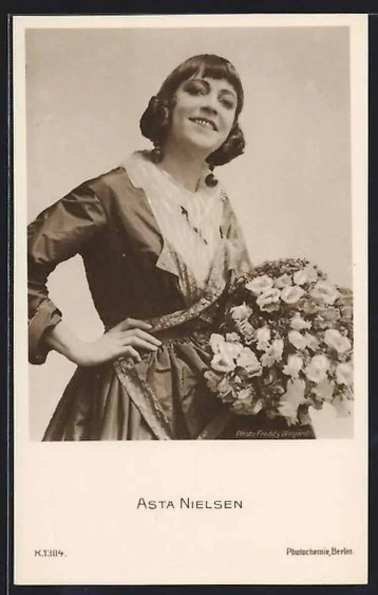 AK Asta Nielsen mit einem Blumenstrauss in der Hand
