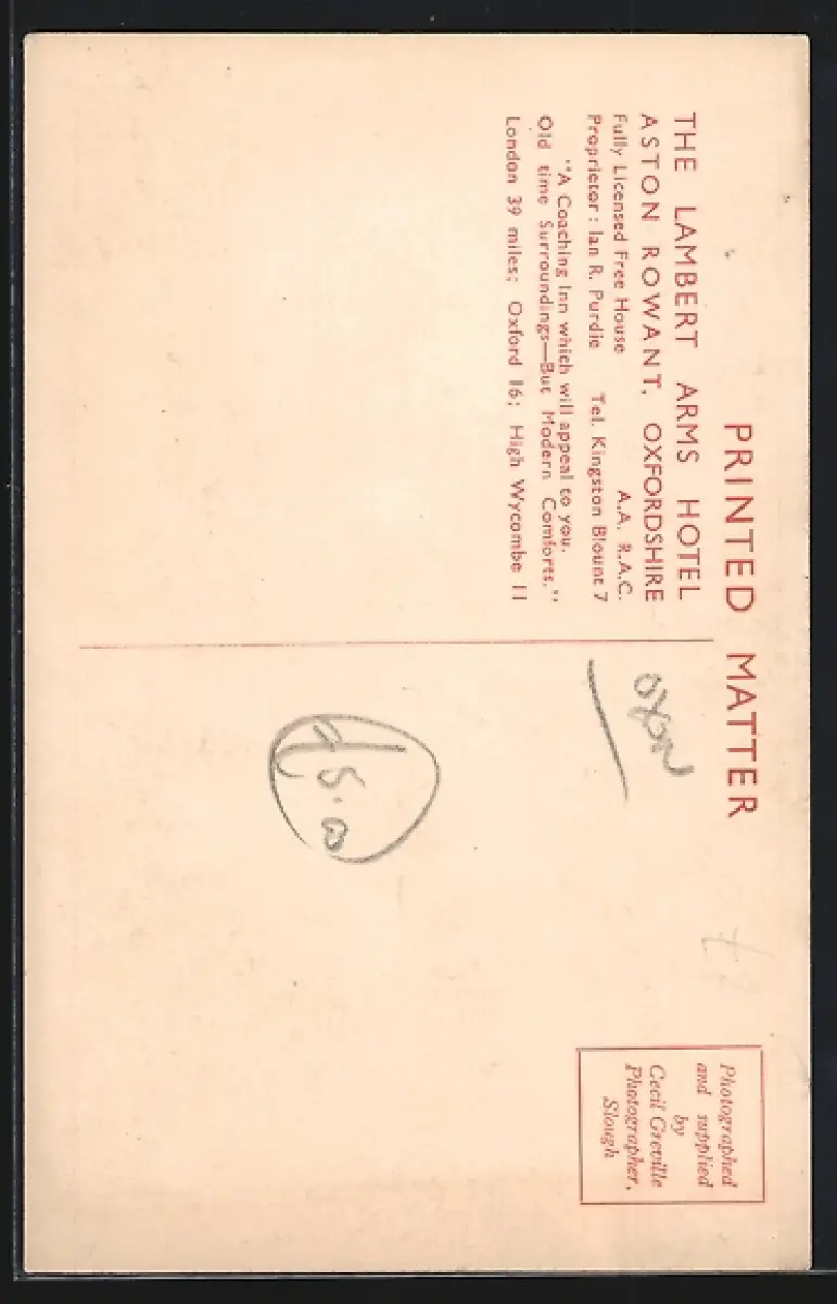 AK Aston Rowant, The Lambert Arms Hotel, Aussen- und Innenansicht