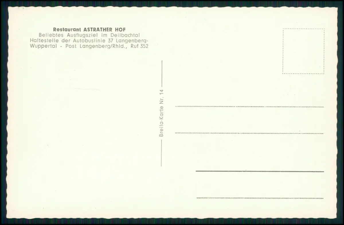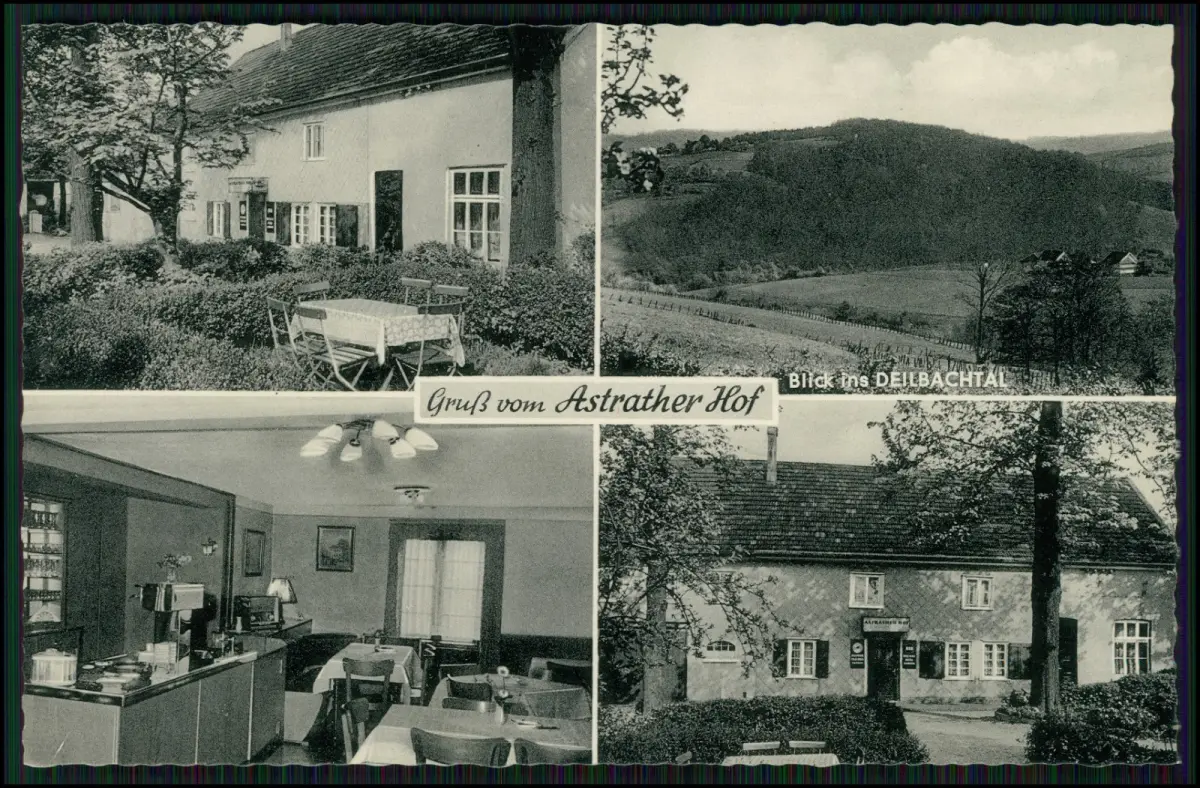Der Astrather Hof war ein beliebtes Ausflugsziel im Deilbachtal und lag an der damaligen Autobuslinie zwischen Langenberg und Wuppertal. Die Umgebung ist geprägt von bewaldeten Hügeln und bäuerlichen Strukturen, typisch für das Niederbergische Land.