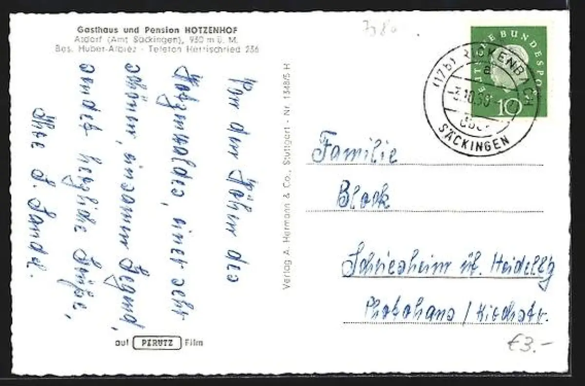 AK Atdorf /Säckingen, Gasthaus und Pension Hotzenhof, Landschaftspanorama