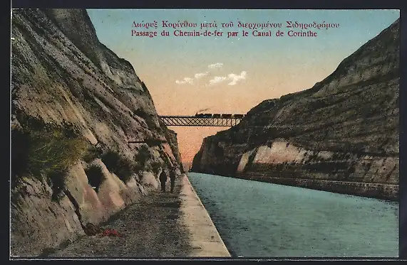AK Athènes / Athen, Passage du Chemin-de-fer par le Canal de Corinthe