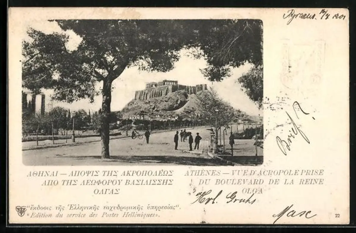 AK Athènes, Vue d`Acropole prise du Boulevard de la Reine Olga