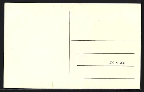 Personenbezogene Daten auf der Rückseite der Karte wurden durch blauen Textmarker unkenntlich gemacht. Die blauen Stellen sind auf die Vorderseite durchgeweicht und wirken sich negativ auf das Postkartenfoto aus