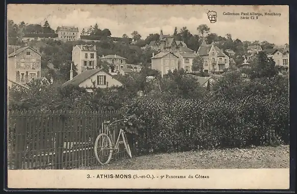 AK Athis-Mons, Panorama du Coteau avec vélo appuyé à une clôture