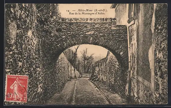 AK Athis-Mons, Rue de la Montagne d`Athis avec passage voûté en pierre