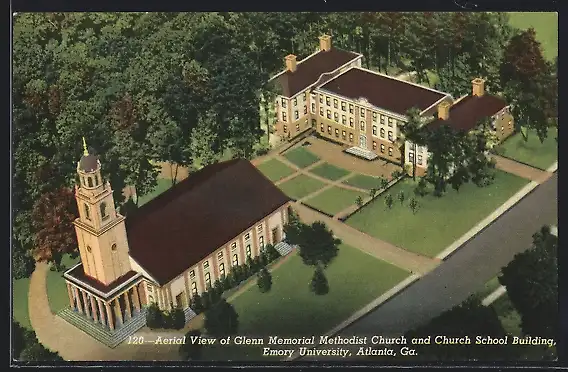 AK Atlanta, GA, Aerial View of Glenn Memorial Methodist Church and Church School Building, Emory University