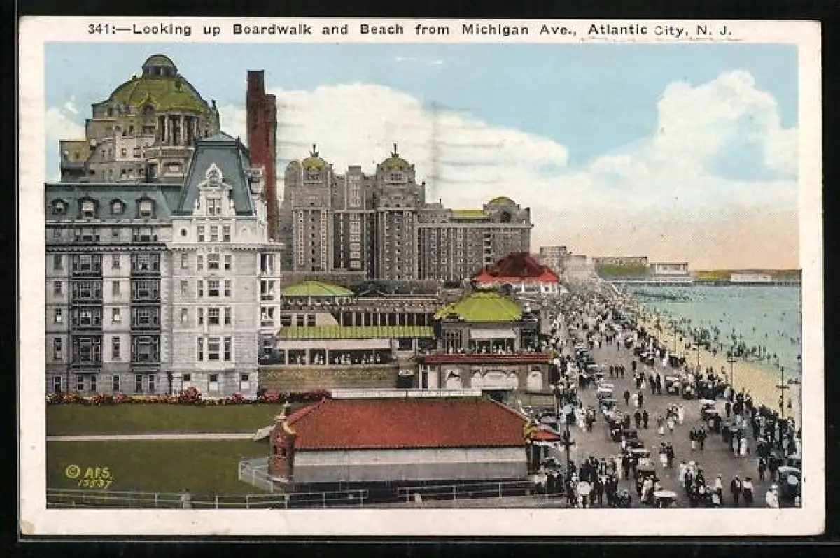 AK Atlantic City, Looking up Boardwalk and Beach from Michigan Ave.