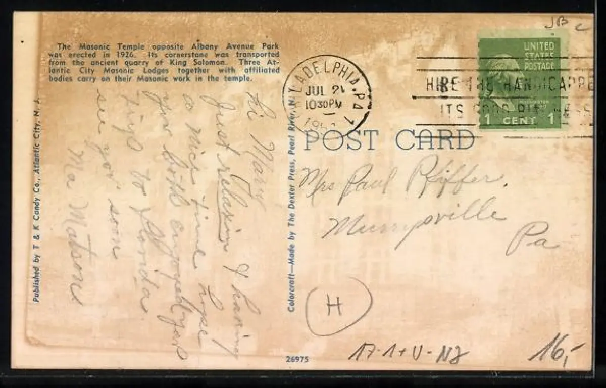 AK Atlantic City, NJ, A view of the Masonic Temple, Freimaurer