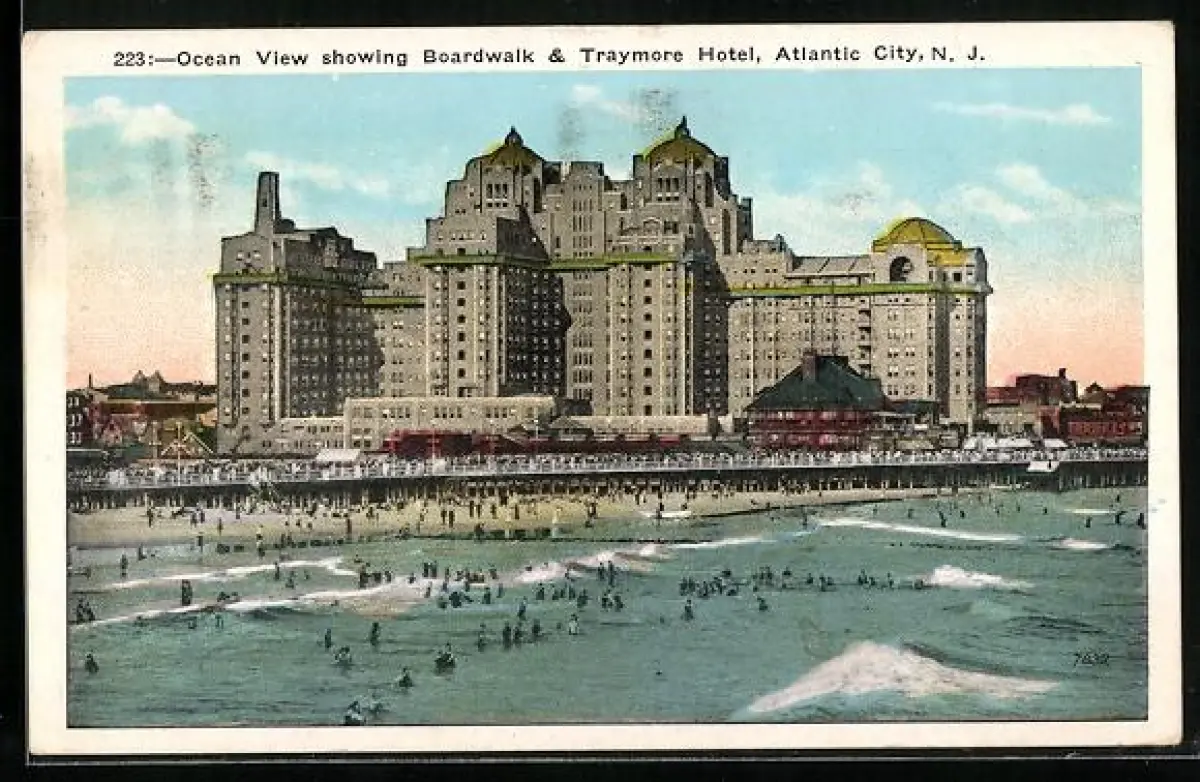 AK Atlantic City, Ocean View showing Boardwalk & Traymore Hotel