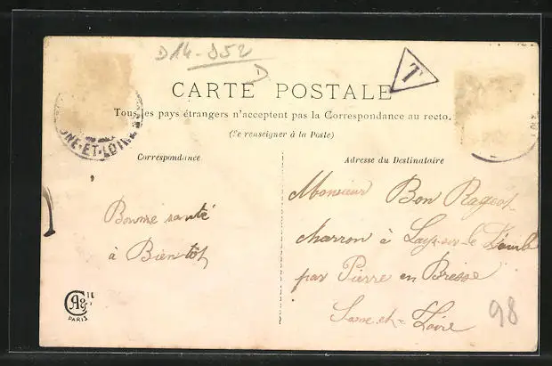 alte Ansichtskarte, gelaufen, Briefmarke entfernt, guter Zustand