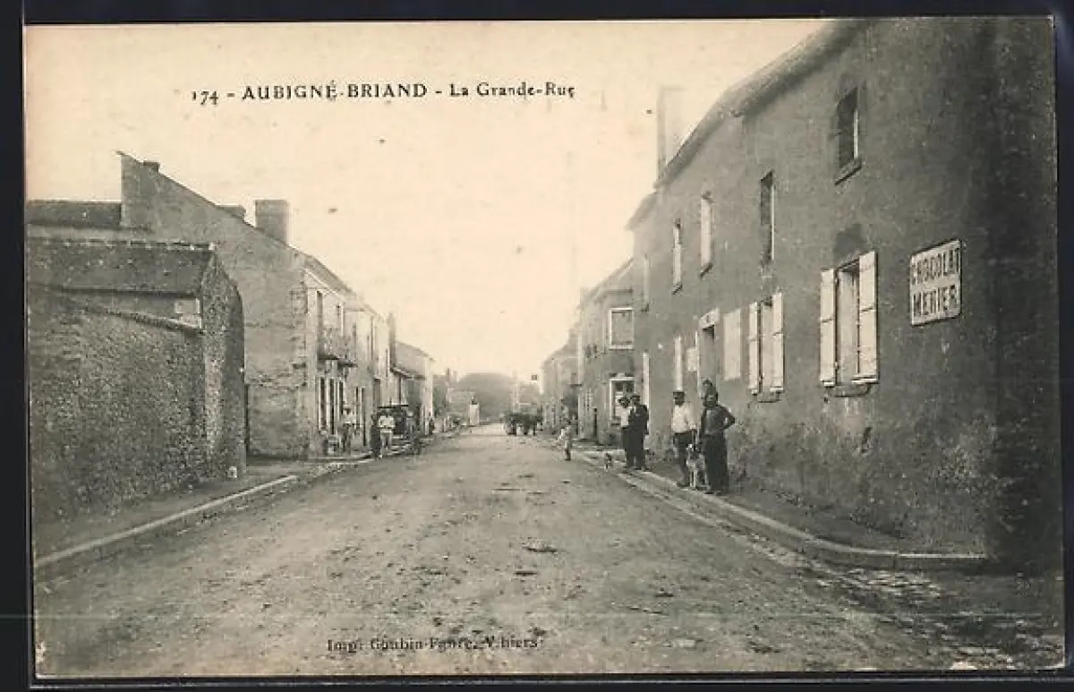 AK Aubigné-Briand, La Grande-Rue animée avec habitants et bâtiments adjacents