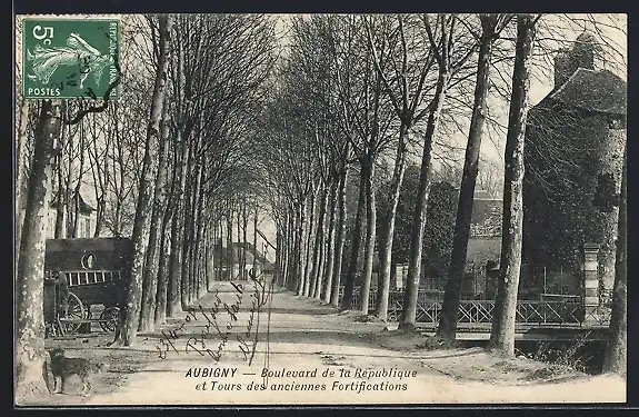 AK Aubigny, Boulevard de la République et Tours des anciennes Fortifications