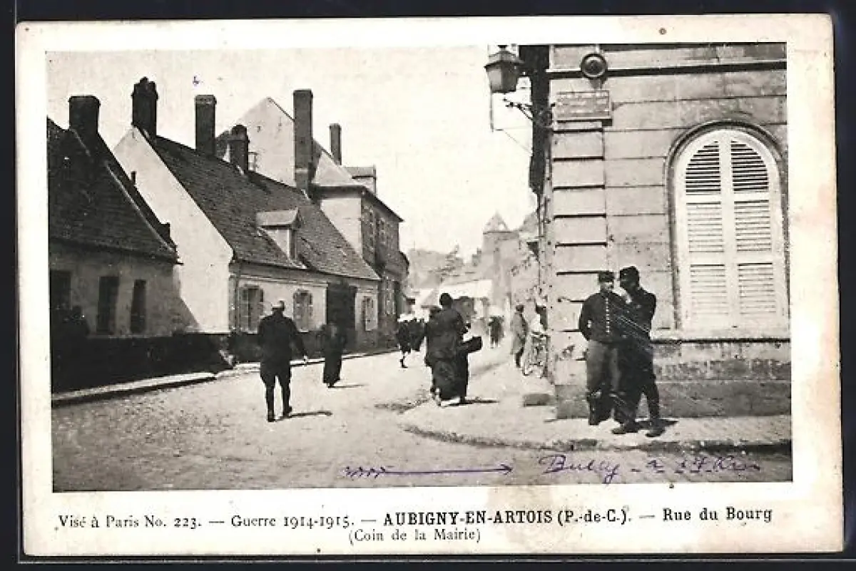 AK Aubigny-en-Artois /P.-de-C., Rue du Bourg, Coin de la Mairie