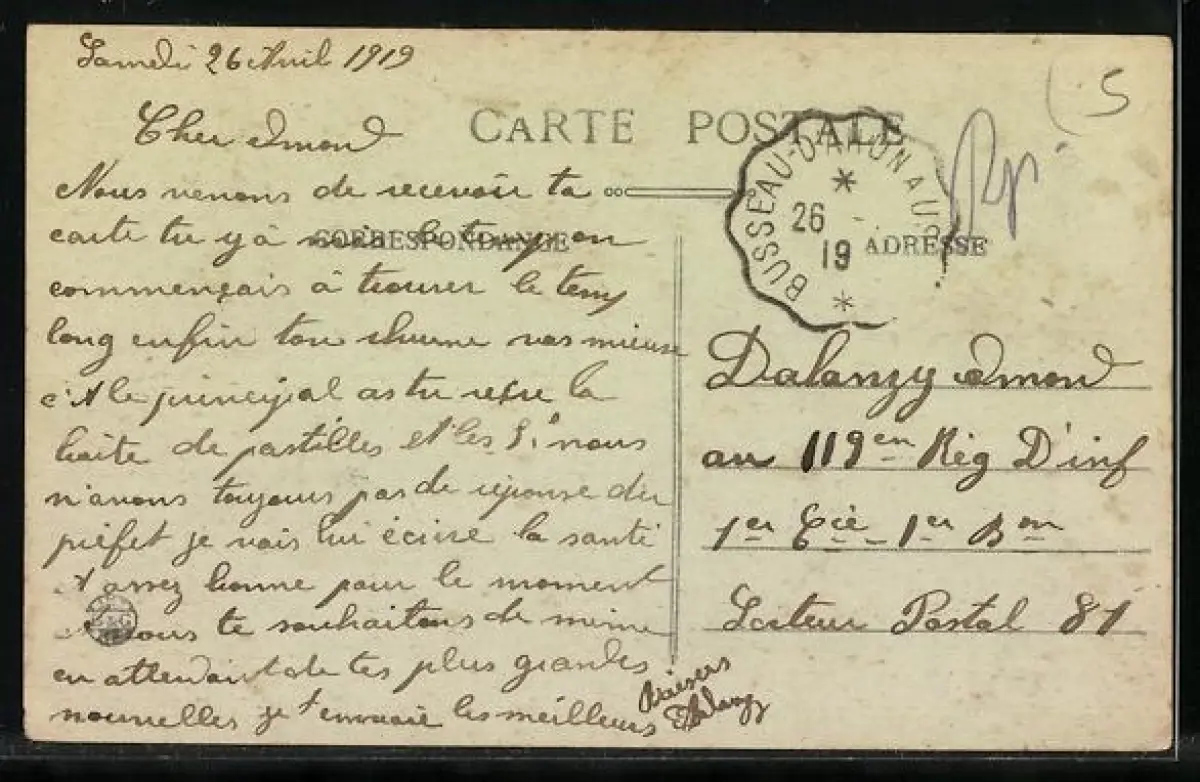 gelaufen 1919, Briefmarke entfernt, guter Zustand