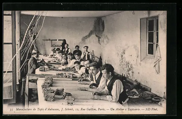 AK Aubusson, Manufacture de Tapis, J. Schenk, 12, Rue Gaillon, Paris, Un Atelier à Tapisserie, Teppichweberei