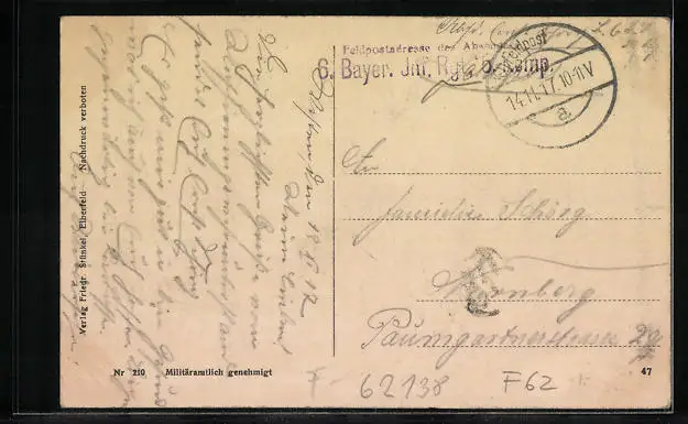 alte Ansichtskarte, gelaufen 1917 als Feldpost, guter Zustand