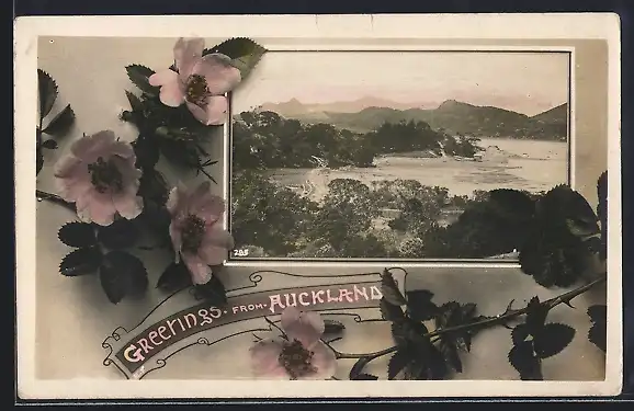 AK Auckland, Flusspartie im Blumen-Passepartout
