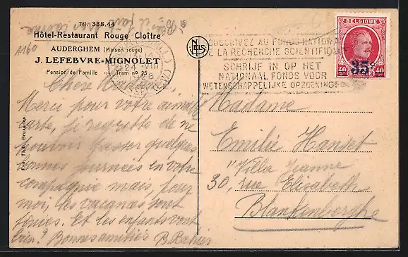AK Auderghem, Hôtel-Restaurant Rouge Cloître, J. Lefebvre-Mignolet