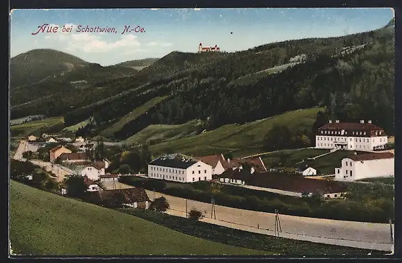 AK Aue bei Schottwien, Ortsansicht mit Umgebung