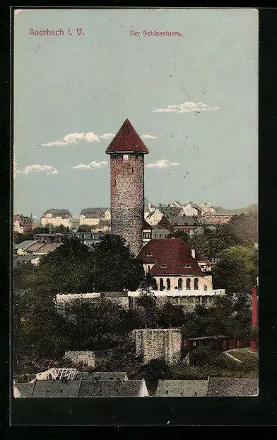 AK Auerbach i. V., Schlossturm aus der Vogelschau