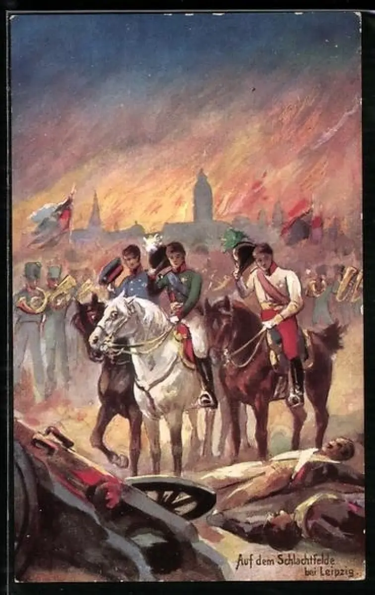 AK Auf dem Schlachtfelde bei Leipzig, Trauerzeremonie