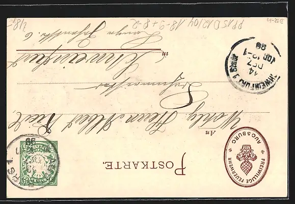 alte Ansichtskarte, gelaufen 1899, guter Zustand