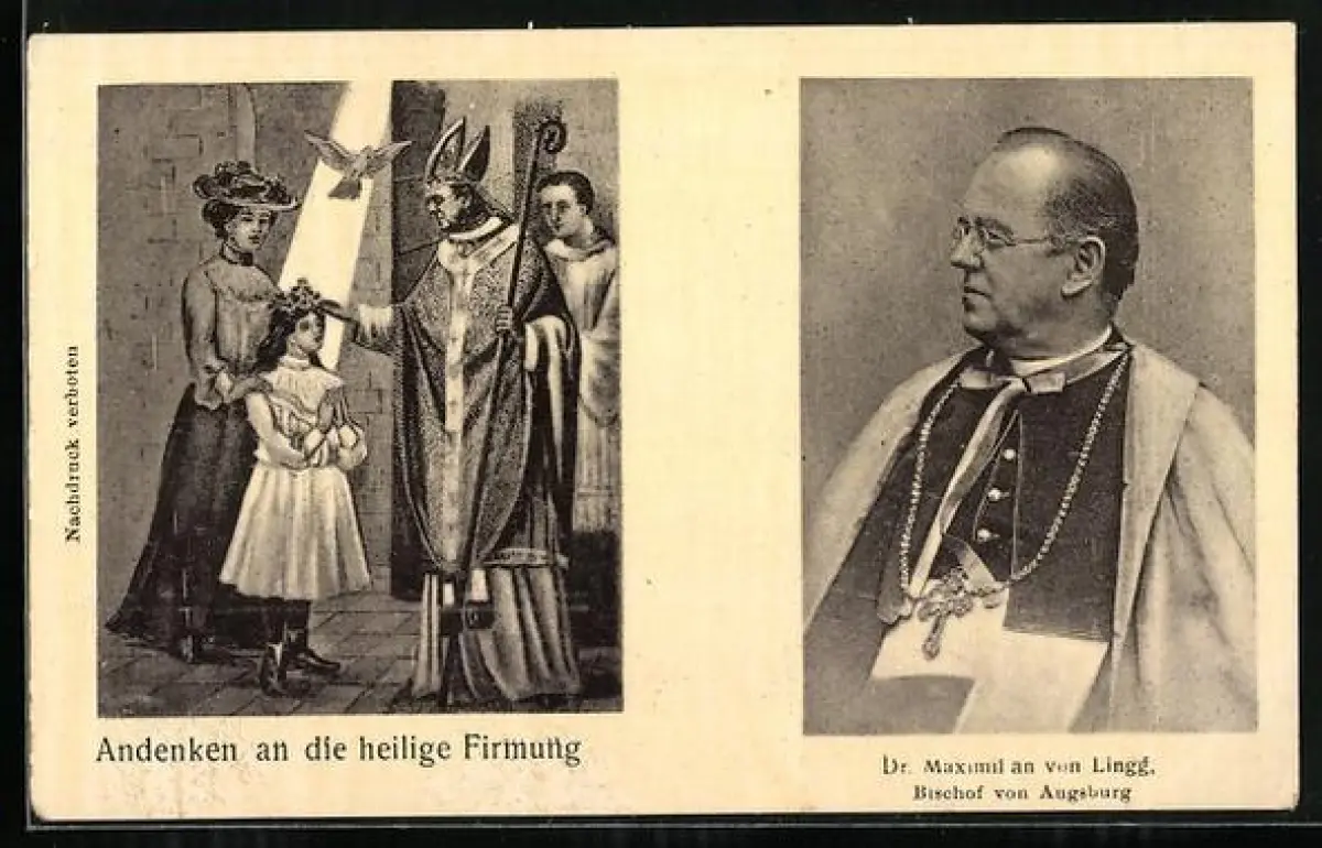 AK Augsburg, Bischof Dr. Maximilian von Lingg im Porträt und bei einer Firmung