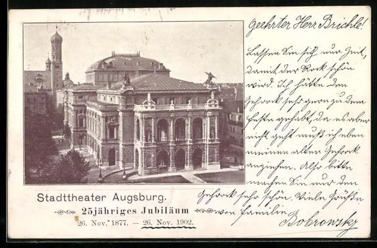 AK Augsburg, Blick auf das Stadttheater, 25-jähriges Jubiläum 1877-1902