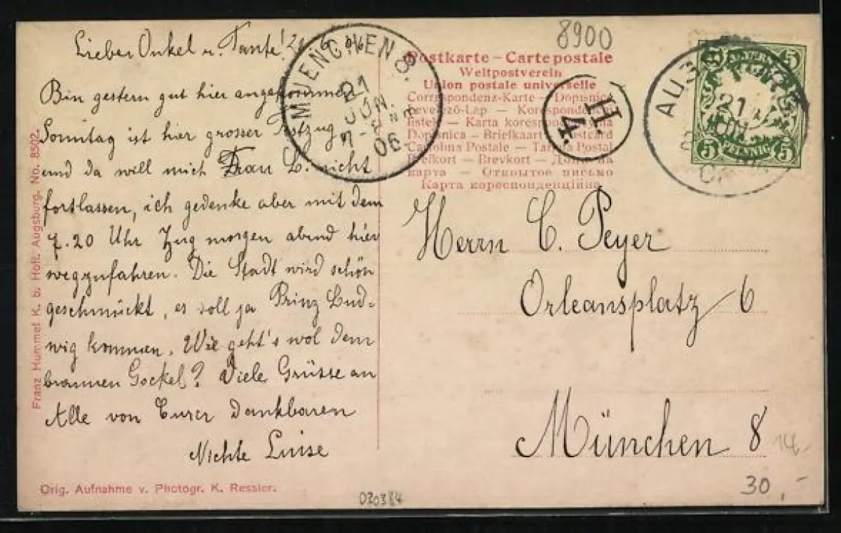 alte Ansichtskarte, gelaufen 1906, guter Zustand