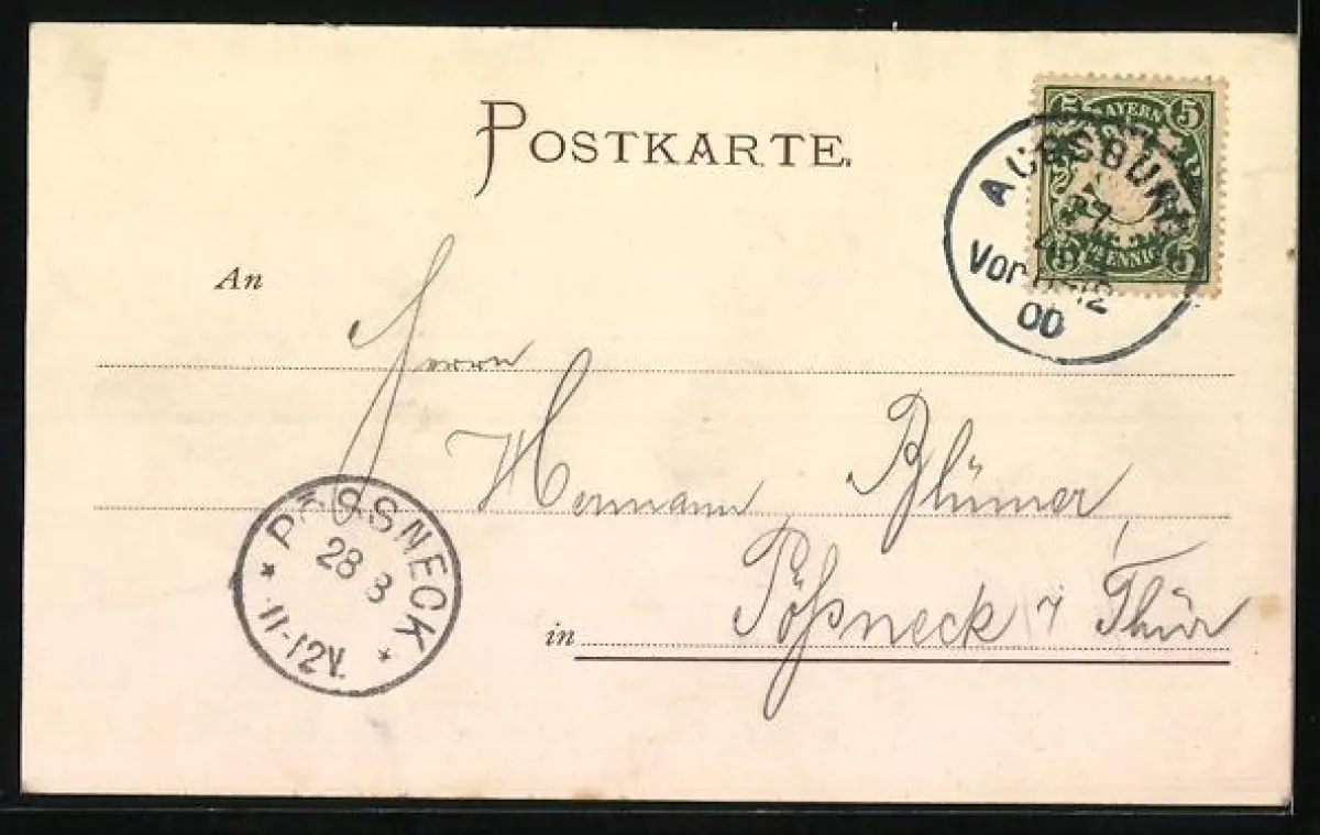 alte Ansichtskarte, gelaufen 1900, Stempelspur, guter Zustand