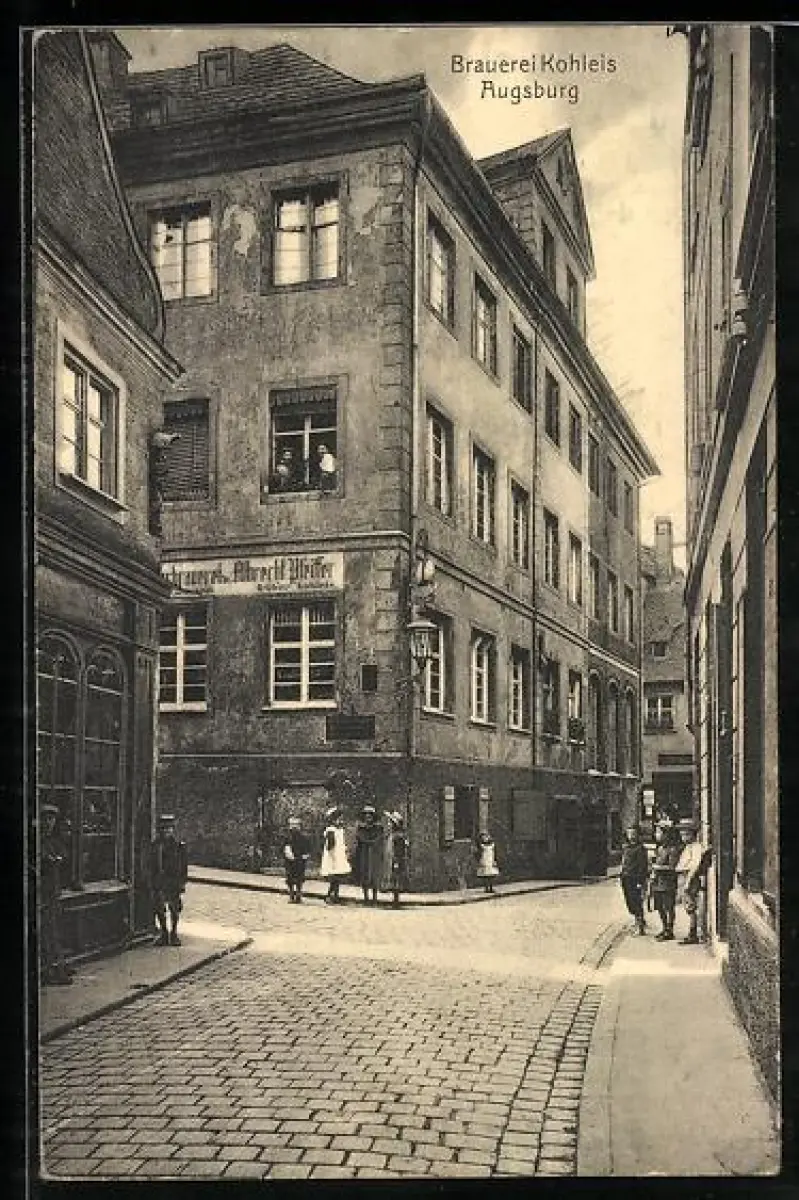 AK Augsburg, Gasthof Brauerei Kohleis Albrecht Pfeiffer mit Strasse u. Kindergruppe