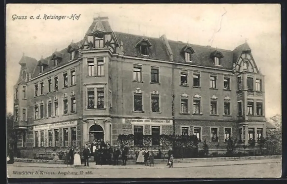 AK Augsburg, Gasthof Reisinger Hof mit Strassenpartie