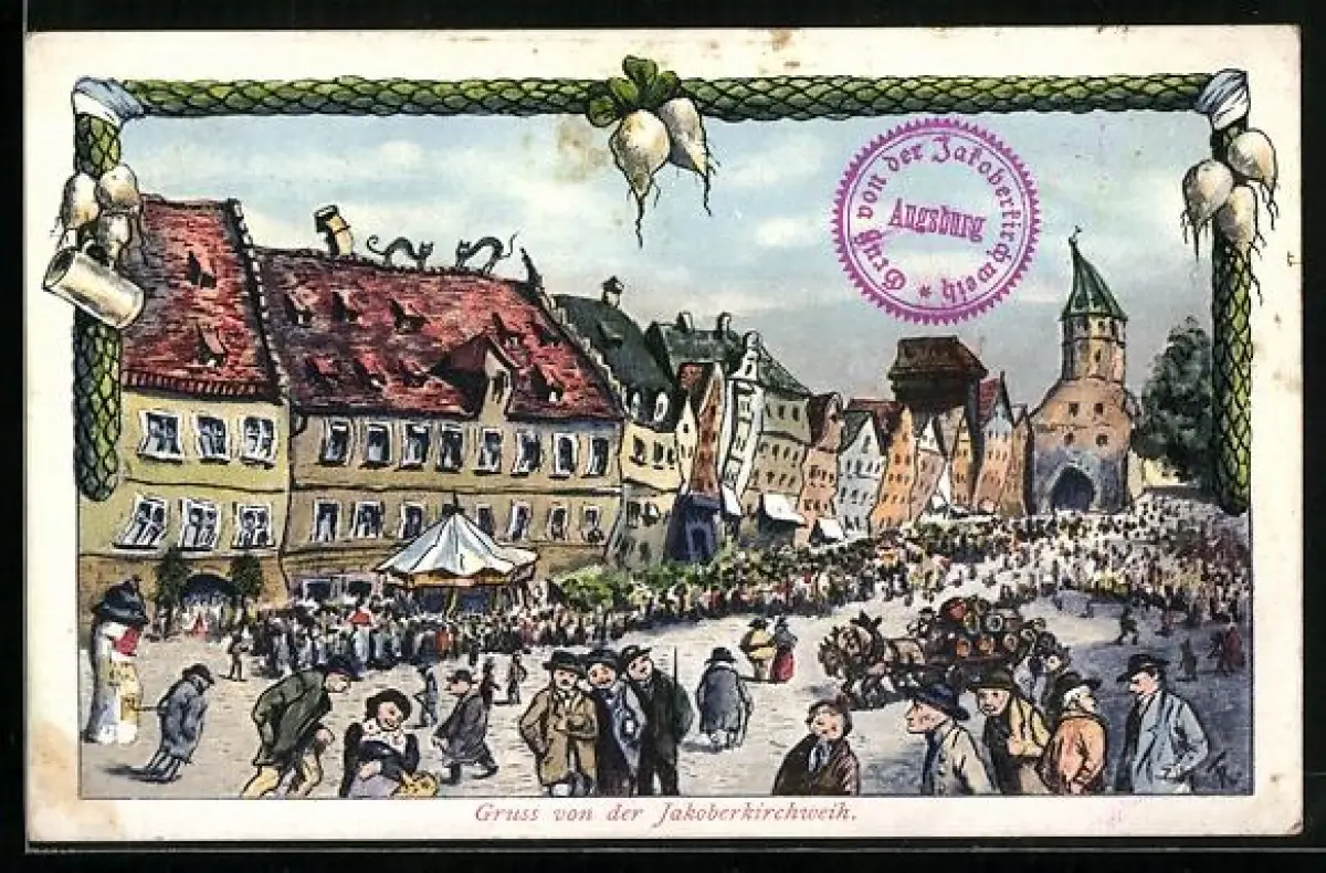 AK Augsburg, Jakoberkirchweih-Volksfest, Schwankende Häuser aus der Sicht eines Betrunkenen