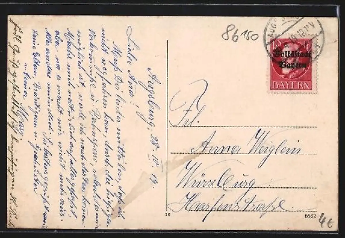 alte Ansichtskarte, gelaufen 1919, Eckknick unten rechts, guter Zustand