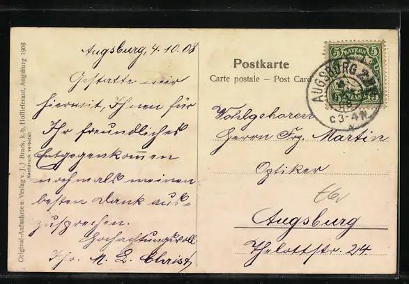 alte Ansichtskarte, gelaufen 1908, guter Zustand