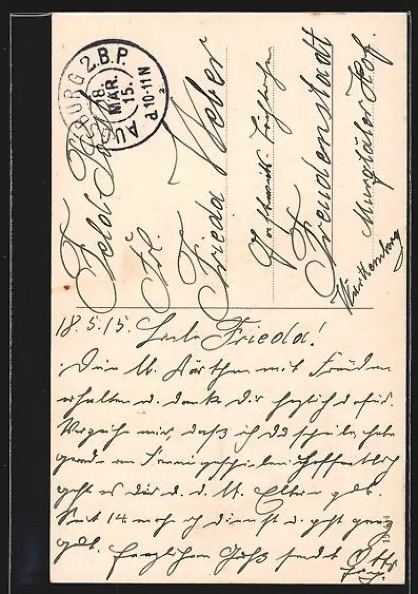 alte Ansichtskarte, gelaufen 1915, Stempelspur, guter Zustand