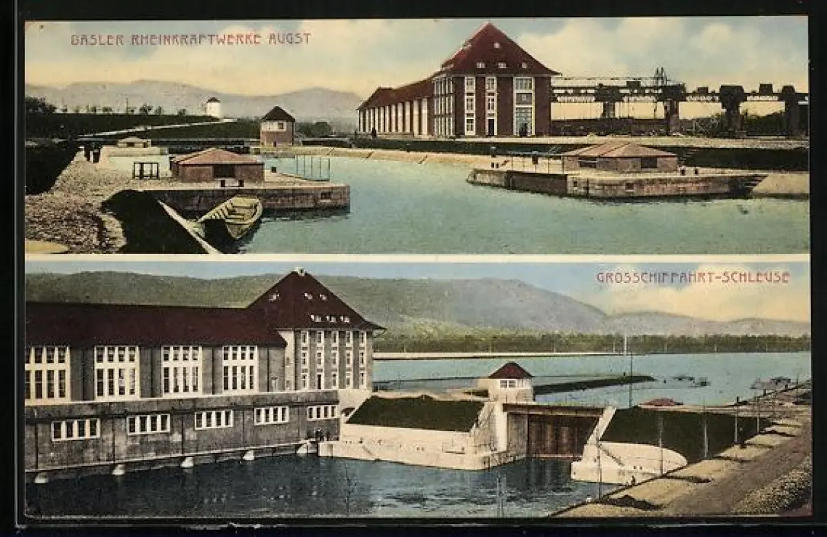 AK Augst, Basler Rheinkraftwerke, Grossschifffahrt-Schleuse