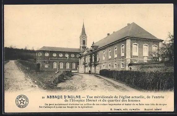 AK Aulne, Abbaye d`Aulne, vue meridionale de l`eglise actuelle, de l`entree de l`Hospice Herset
