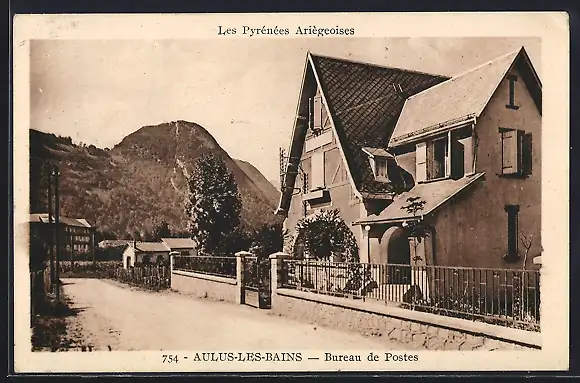 AK Aulus-les-Bains, Bureau de Postes avec vue sur les Pyrénées Ariégeoises