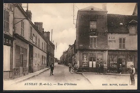 AK Auneau, Rue d`Orléans avec chapellerie et tabacs