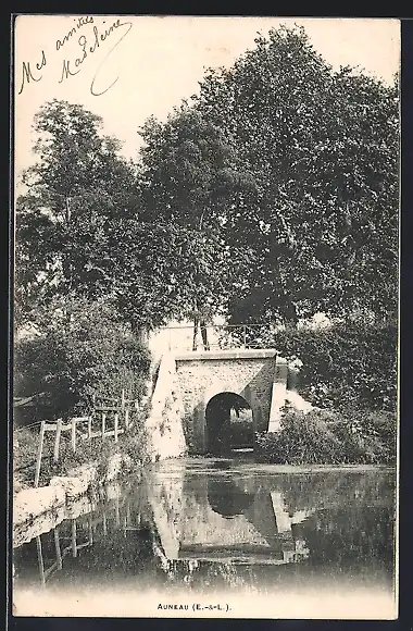 AK Auneau, Vue du pont et reflet dans l`eau calme